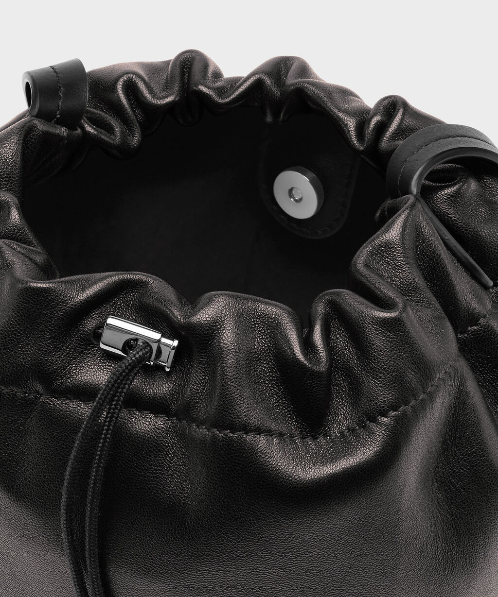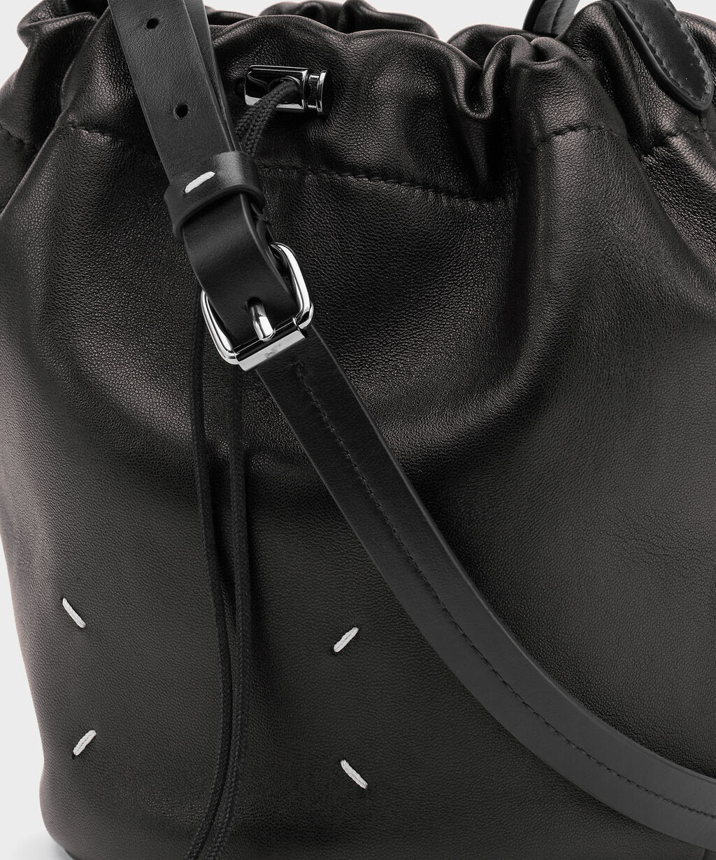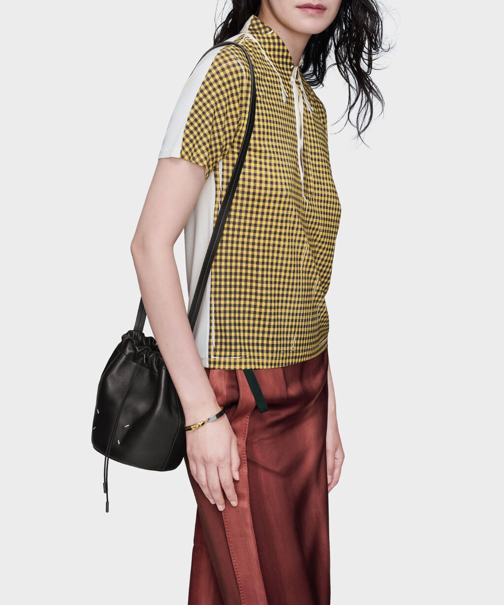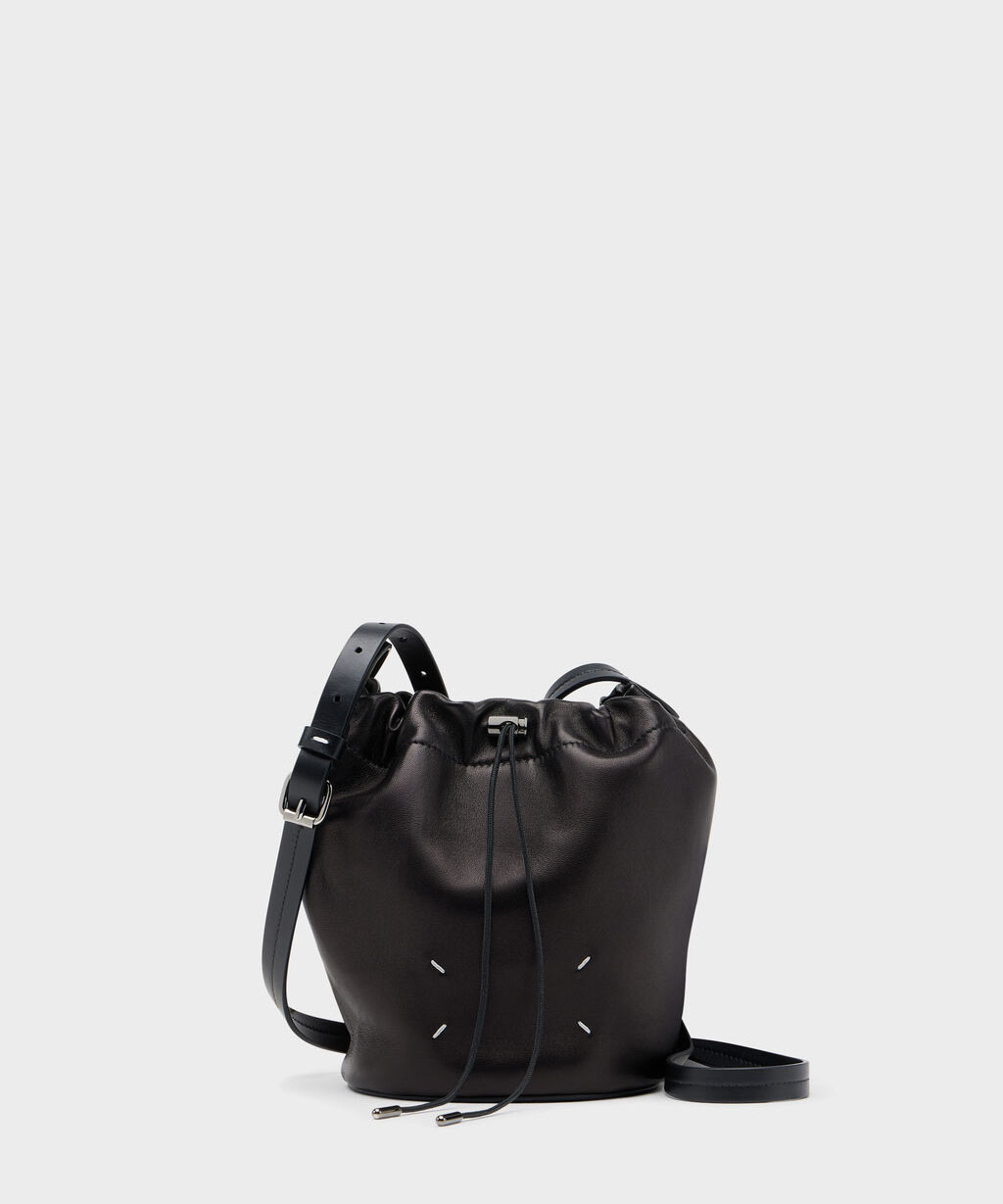 柔らかなナッパレザーを使用した小型のドローストリングポーチです。調節可能なレザーストラップでクロスボディバッグとして使用でき、ドローストリングで開閉します。バックにはメゾンを象徴する4ステッチを配置。イタリア製です。