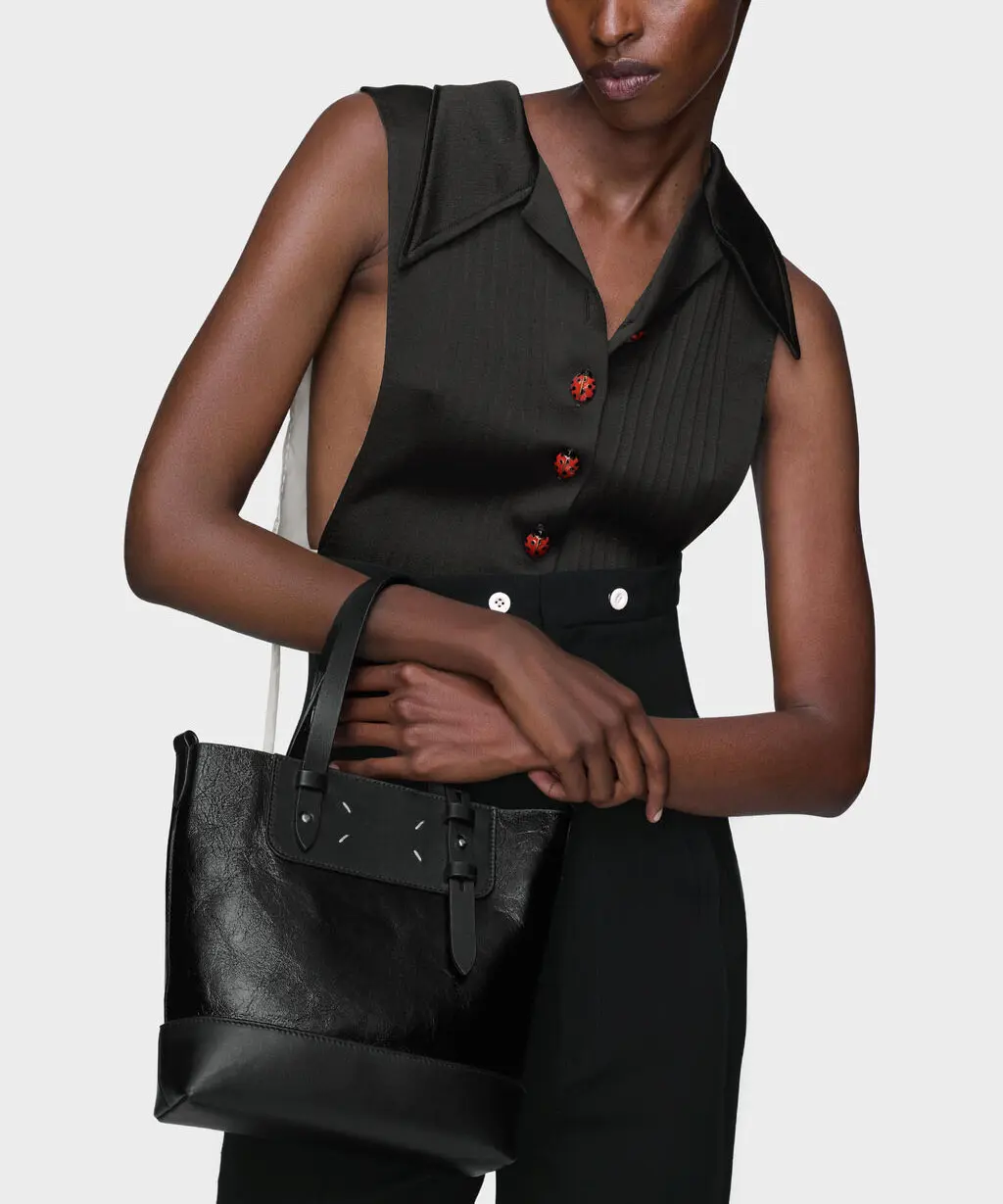 Maison Margielaの「ベルトバッグ トート ミニ」。ベルトディテールを効かせた縦型ミニトートで、シャープなフォルムと上質感が魅力です。小ぶりながらマチがあり、必需品(スマホ・ミニ財布・鍵など)をコンパクトにまとめたい日にぴったり。ストラップ付きで持ち方を変えられるため、シーンに合わせて使い分けができます。