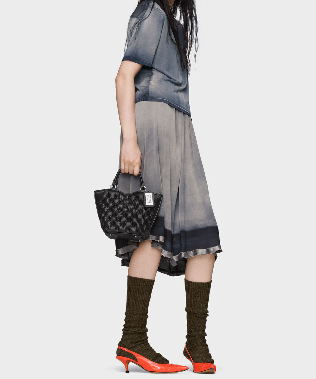 「グラム スラム」らしいふっくらとした立体感に、エンブロイダリー(刺繍)の表情が映えるミニトートです。小ぶりなサイズでも存在感があり、シンプルなドレスやオールブラックコーデに合わせるだけで一気に華やぎます。ハンドル持ちはもちろん、ストラップで肩掛けにすると抜け感が出て、オケージョンからホテルディナーなどのきれいめシーンまで幅広く活躍。上品さがありつつ“わかる人にはわかる”マルジェラ感を足せるアイテムです。