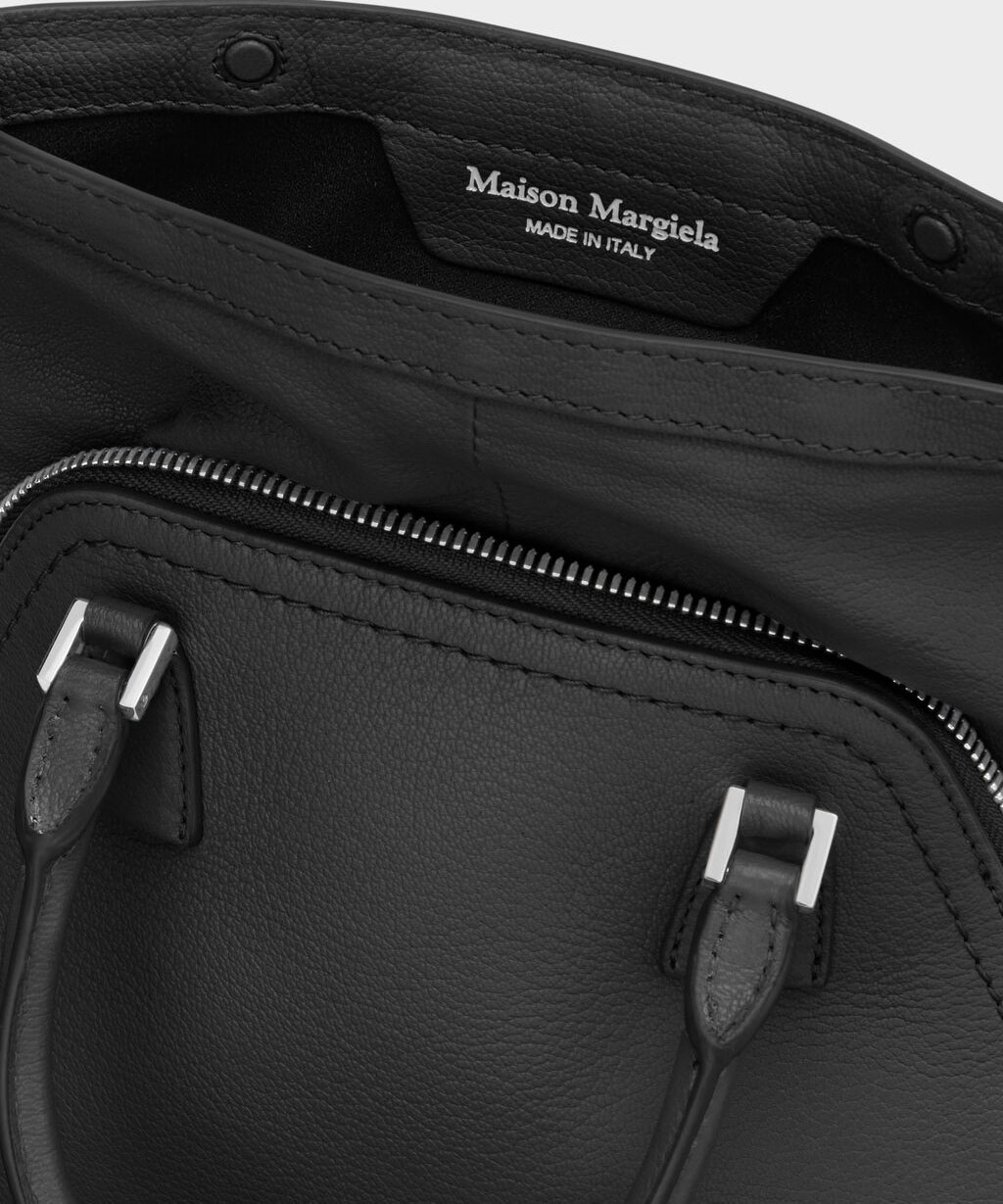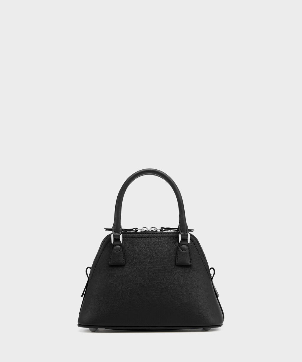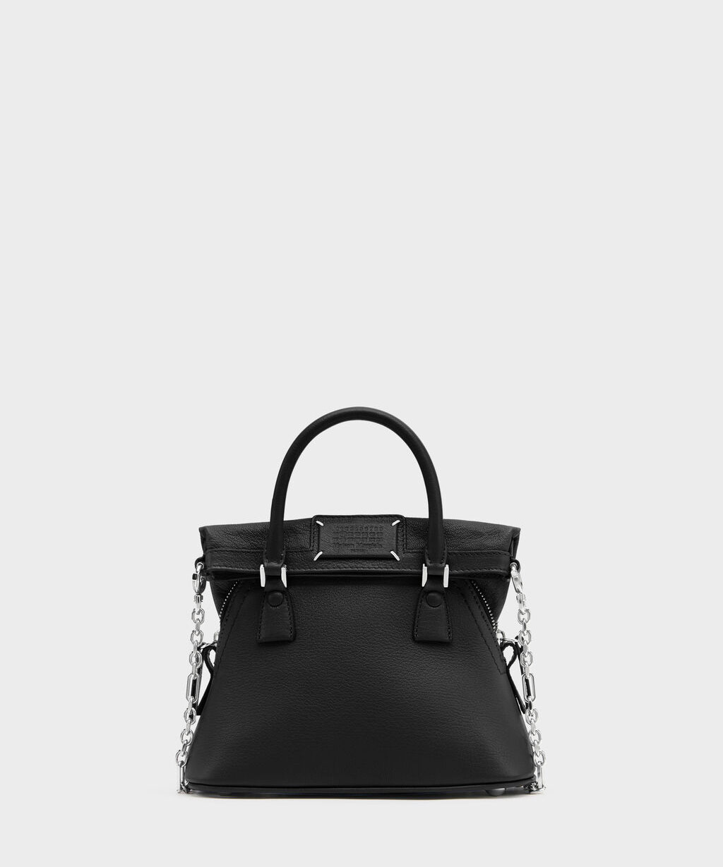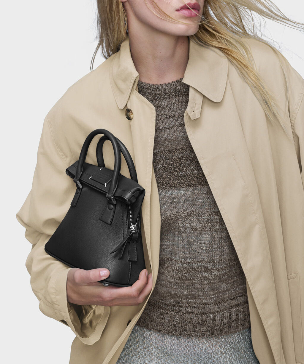 クリーンなラインと精密な構造による洗練されたシルエットが特徴の「5AC」クラシック マイクロ。上部のハンドルと取り外し可能なチェーンストラップで多様な持ち方ができ、「アノニミティ・オブ・ザ・ライニング」のコンセプトを体現したデザインです。フロントにはメゾンのナンバリングラベルをモチーフにした同系色のエンボスラベルをホワイトステッチで固定し、背面には4本の白いステッチを配置。上部はジップクロージャー、メタルフット付きで、内側にロゴスタンプも入ります。