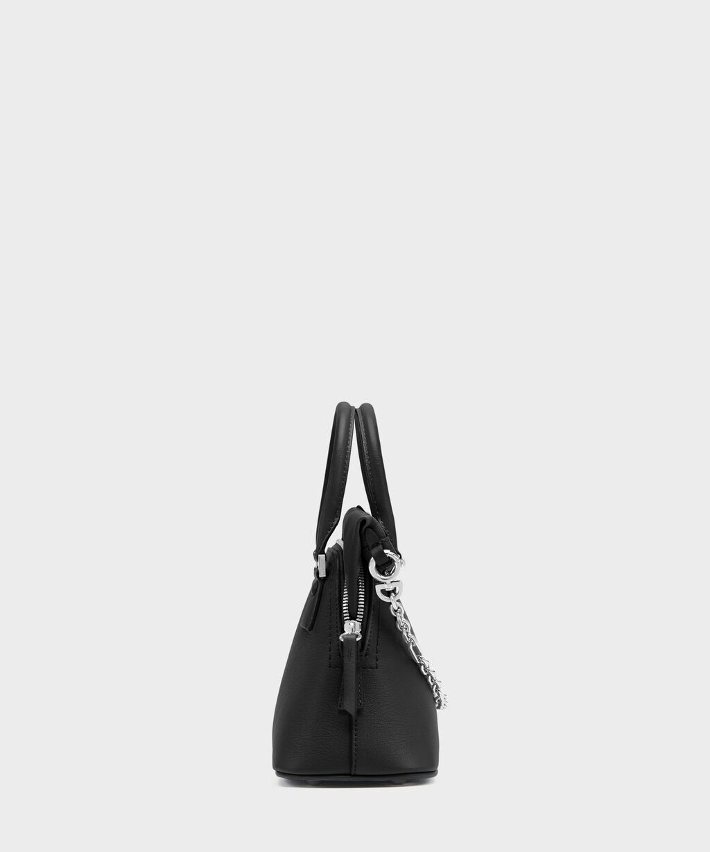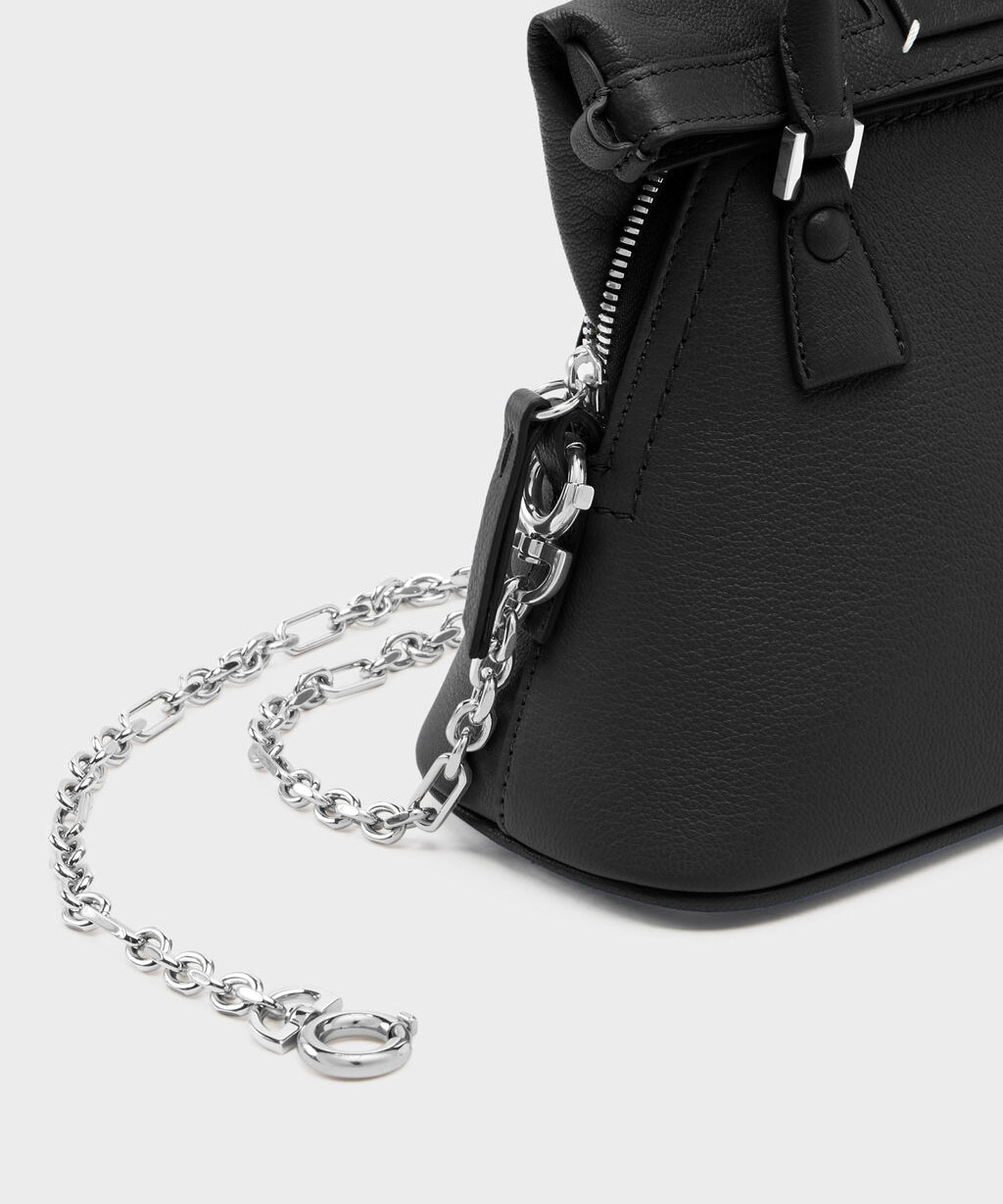 「5AC」らしい端正なフォルムを、マイクロサイズにぎゅっと凝縮したクロスボディバッグです。小さいのに“作りの良さ”が伝わる構造で、持つだけでコーデが引き締まります。トップハンドルとチェーンストラップで持ち方を変えられるので、パーティーは手持ちで上品に、移動が多い日は斜めがけで実用的に。フロントの同系色エンボスラベル+白ステッチがさりげなくマルジェラ感を足してくれて、きれいめシーンでも主張しすぎずに映えます。