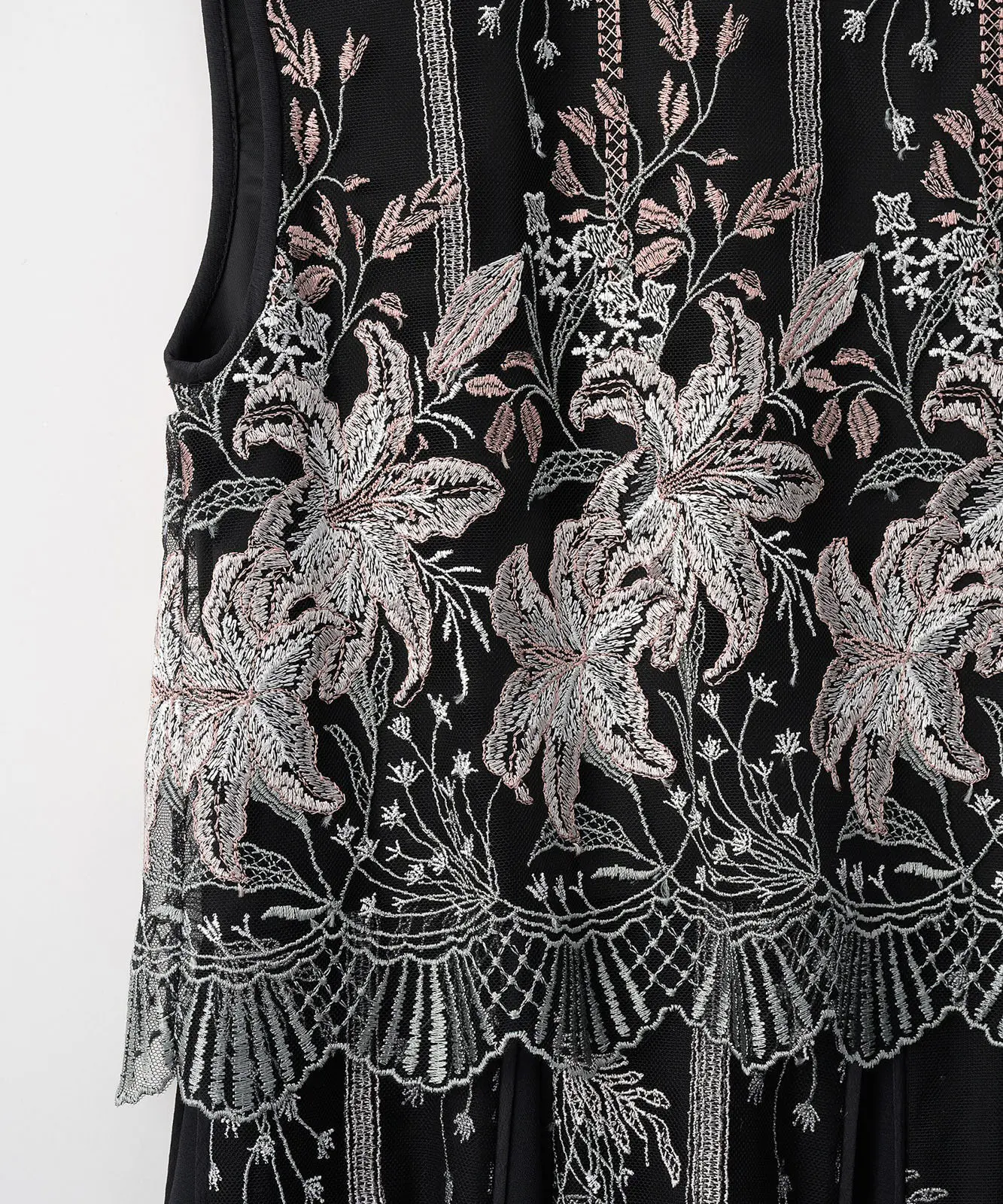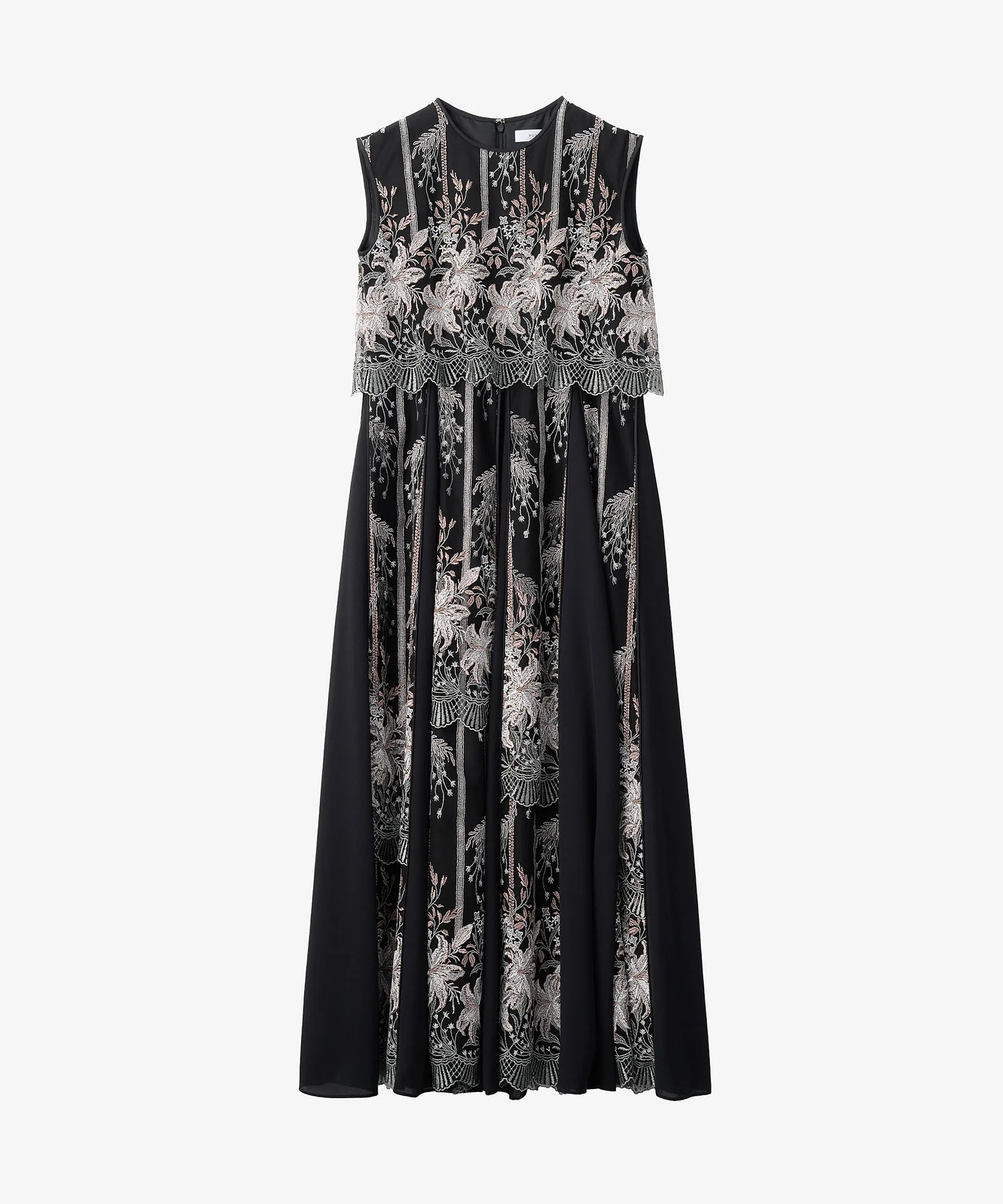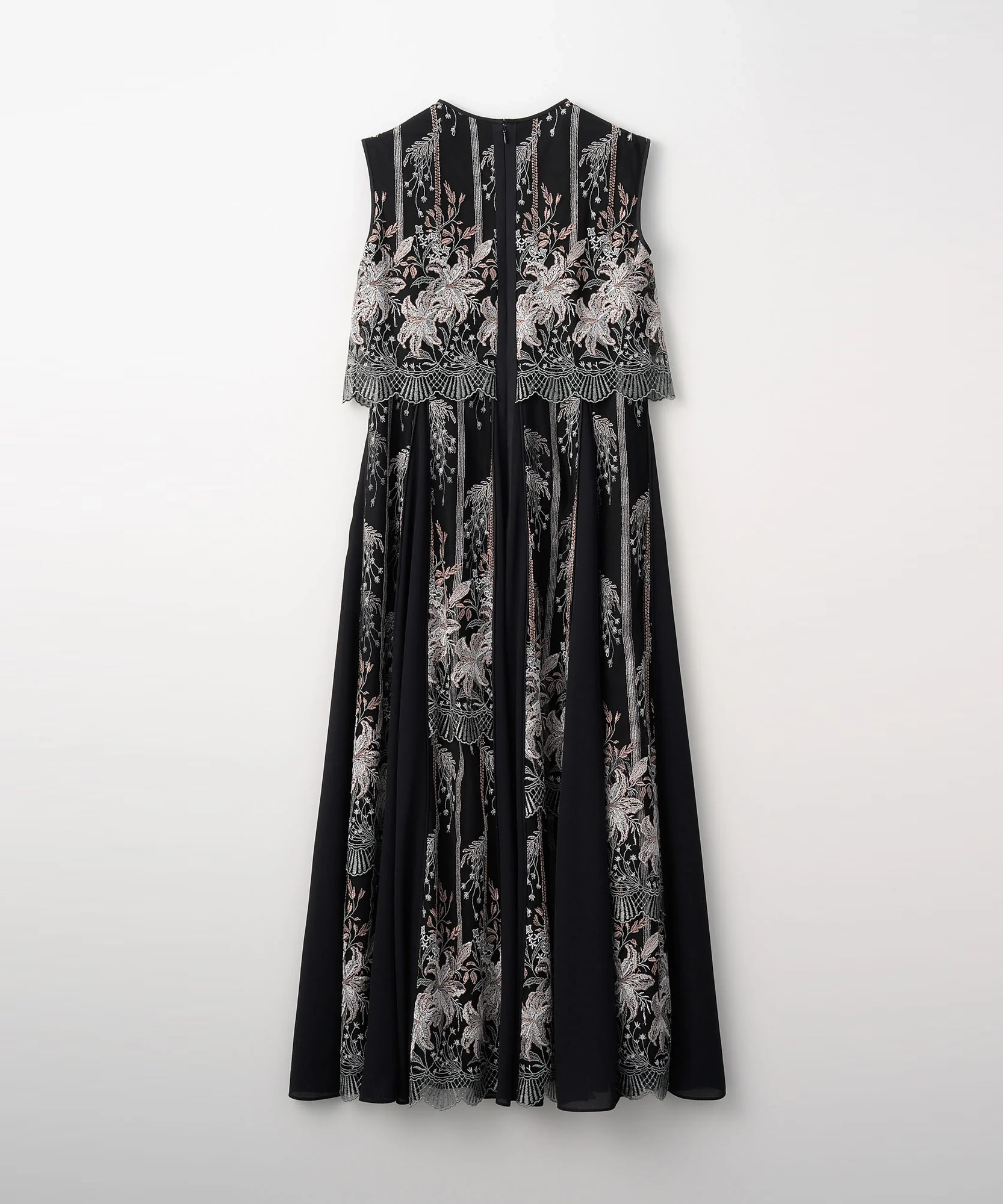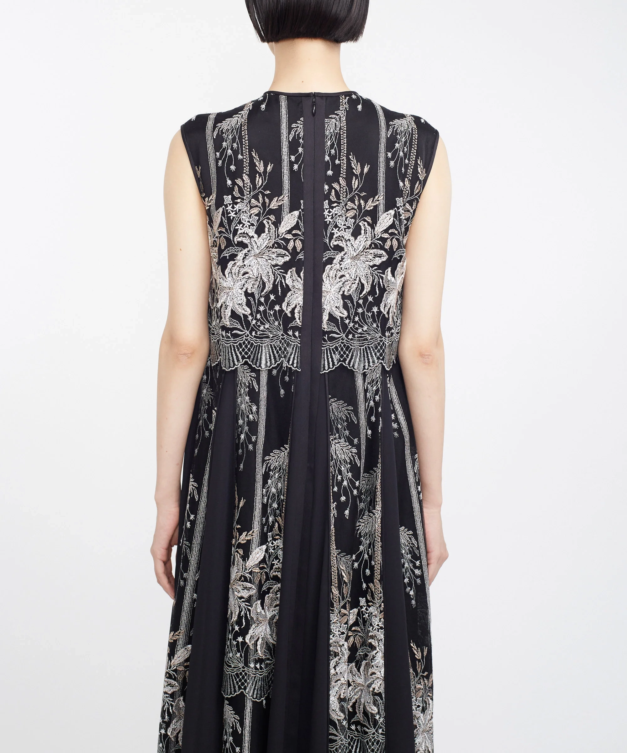 MURRALらしい芸術的な刺繍が目を引くドレス。繊細なラインで描かれたモチーフが、シンプルなベースに映え、上品で洗練された印象を演出します。