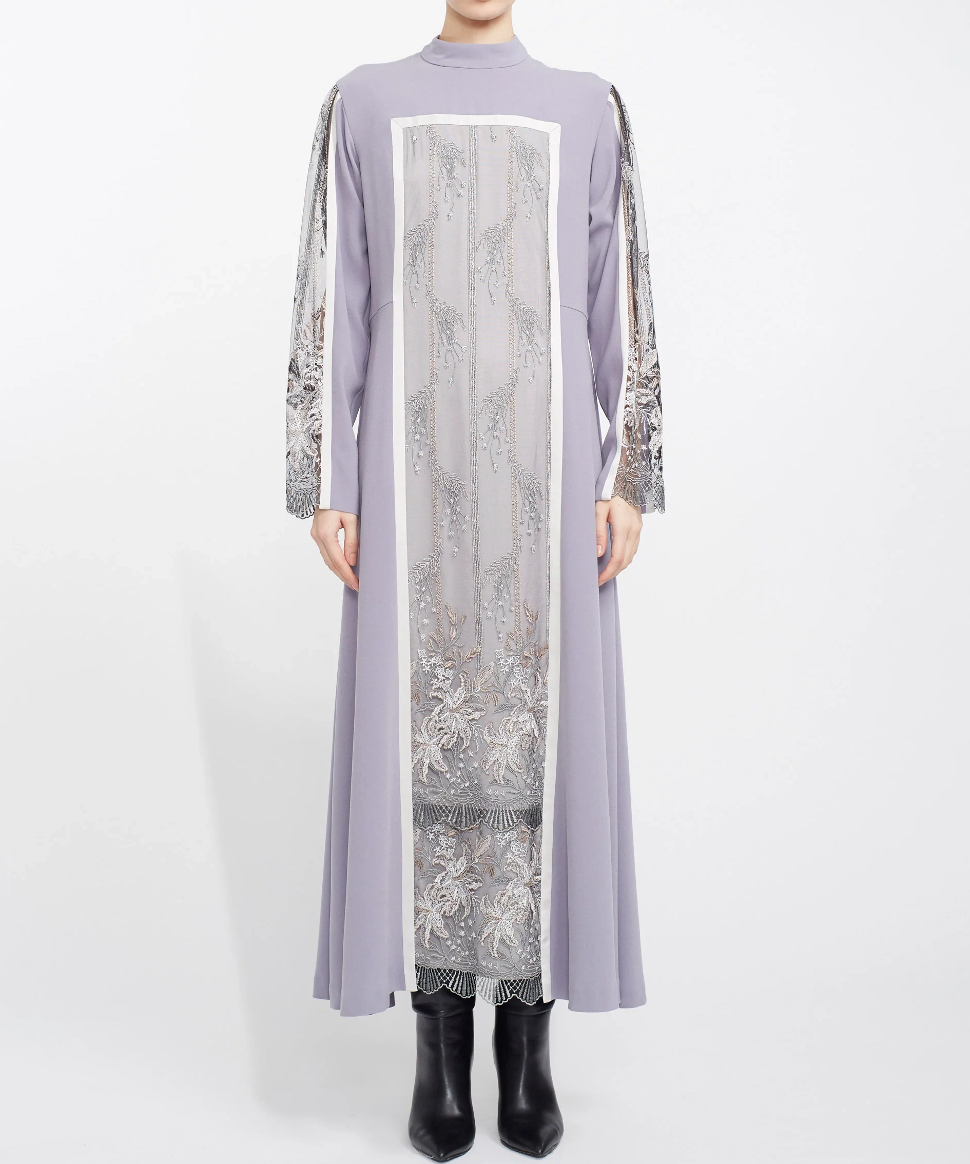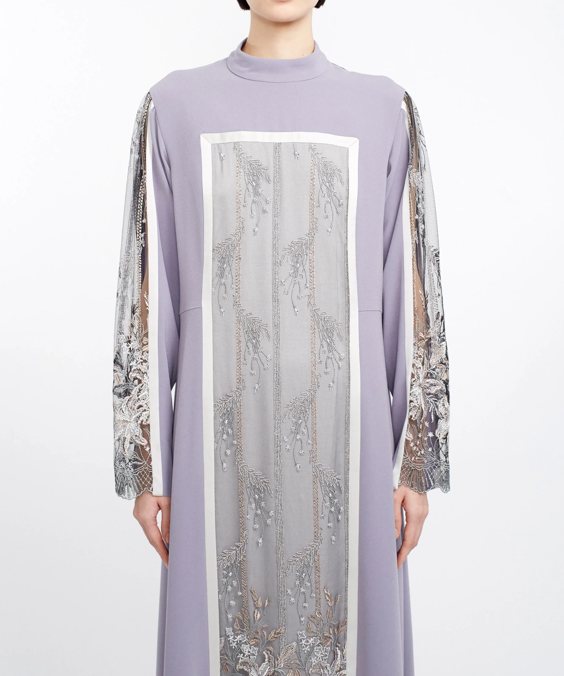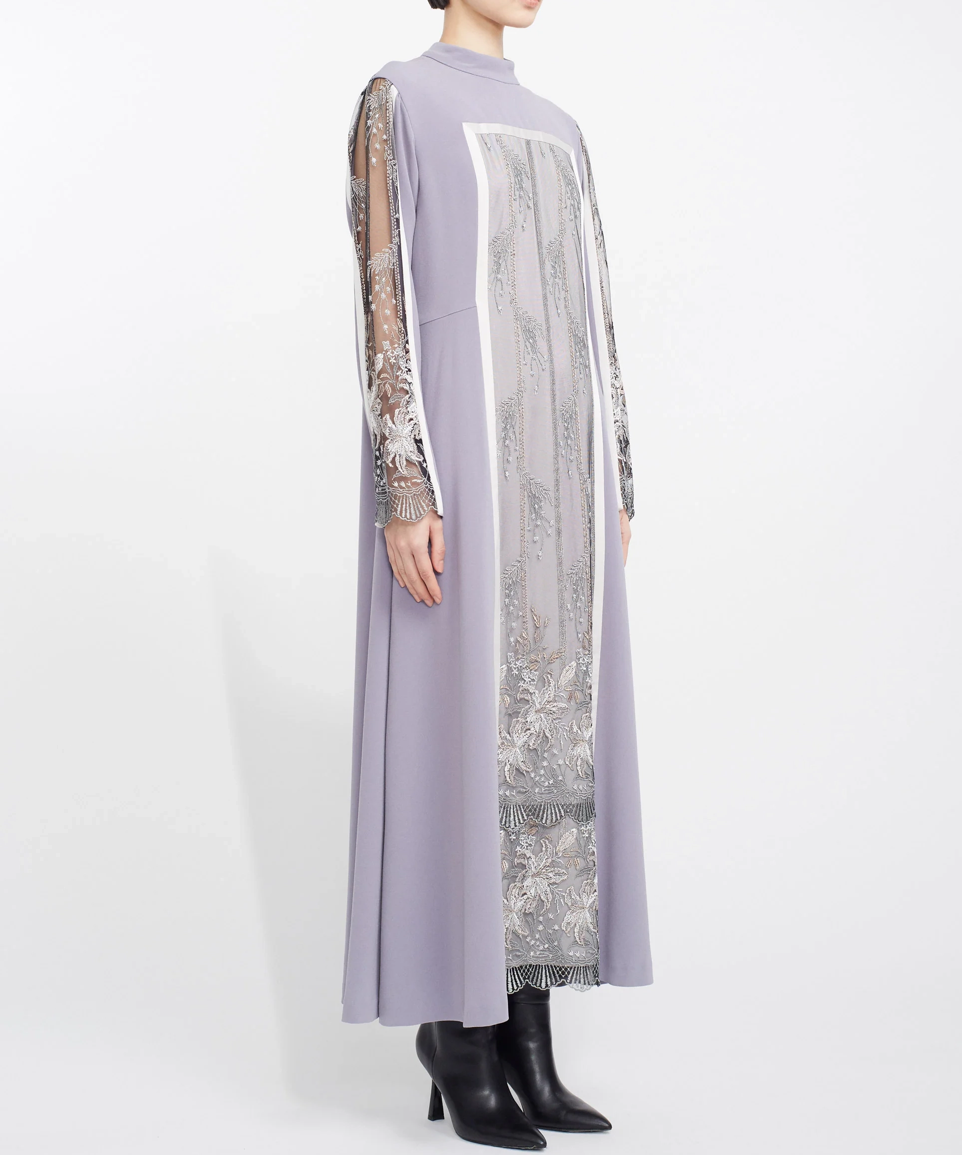 MURRALらしい繊細な刺繍が主役のドレスで、1枚でコーディネートが完成する存在感のあるアイテムです。落ち着いたカラーと上品なデザインで、結婚式やパーティーはもちろん、ホテルディナーなどにもおすすめ。縦のラインを強調するシルエットで、すっきりとした印象に見せてくれます。
