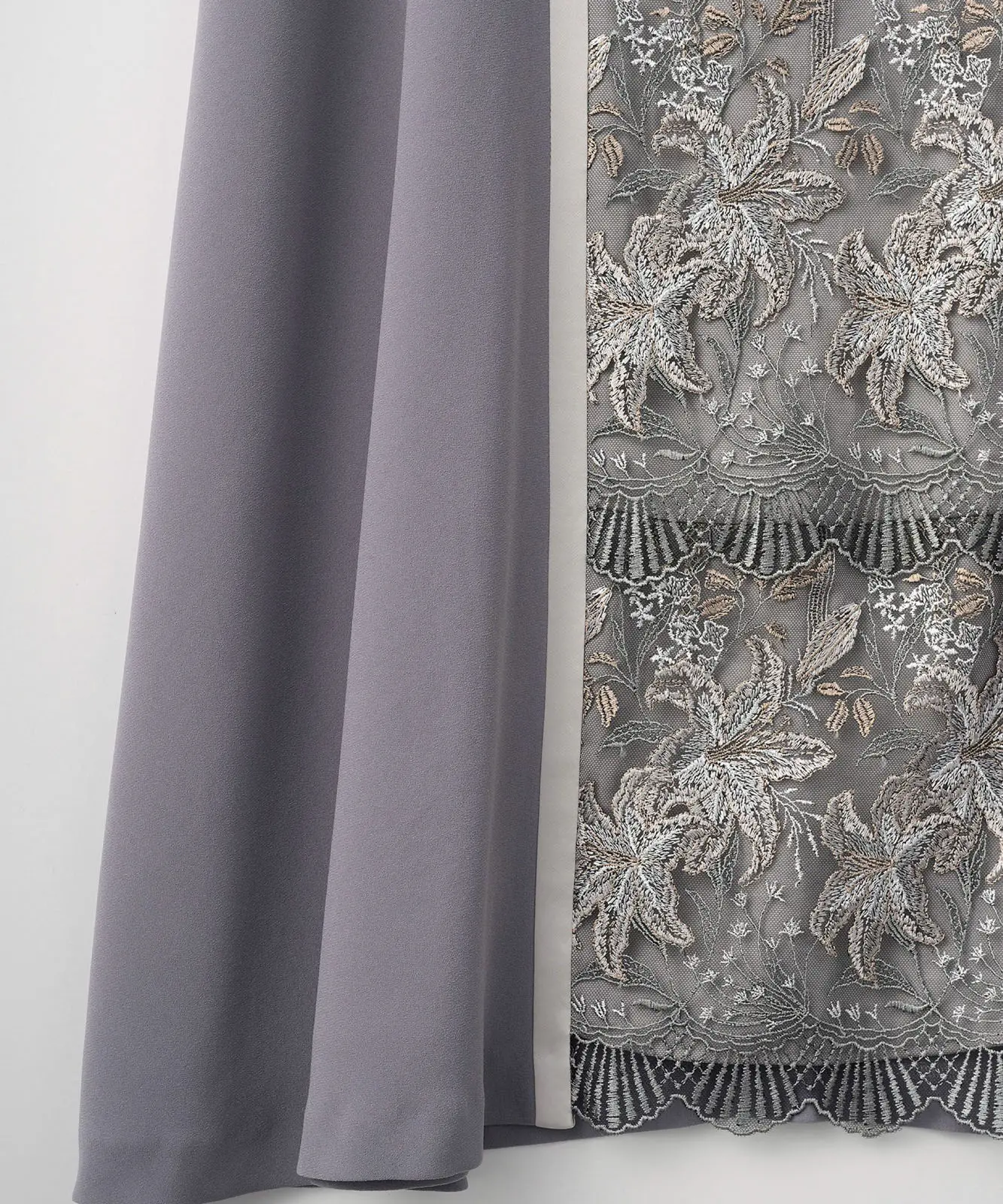 表地 : アセテート83% , ポリエステル17% / レース地 : 土台 ナイロン100% 刺繍糸 レーヨン100% / 切替地 : トリアセテート86% , ポリエステル14% / 土台地 : ポリエステル100% / 裏地 : キュプラ100%