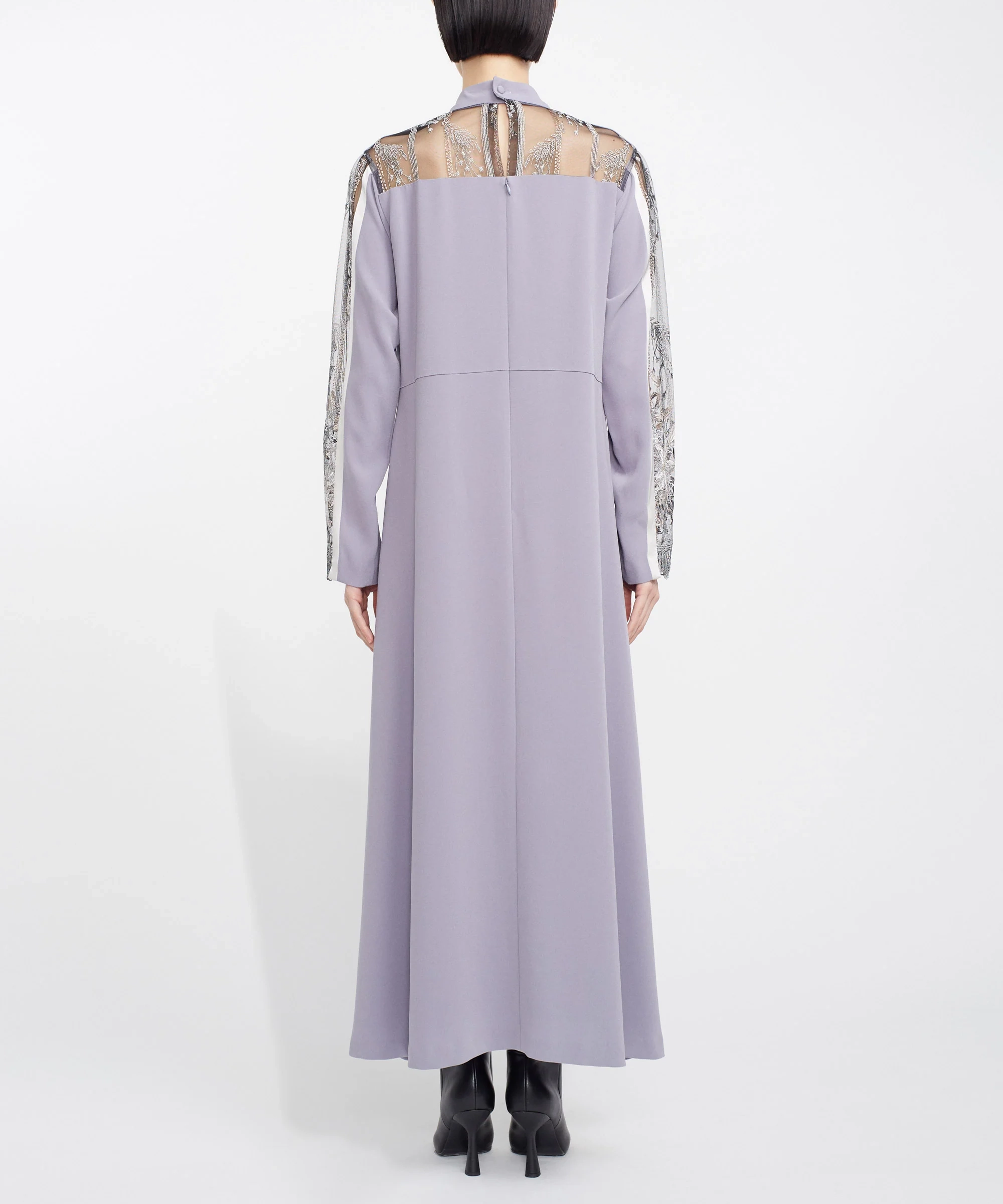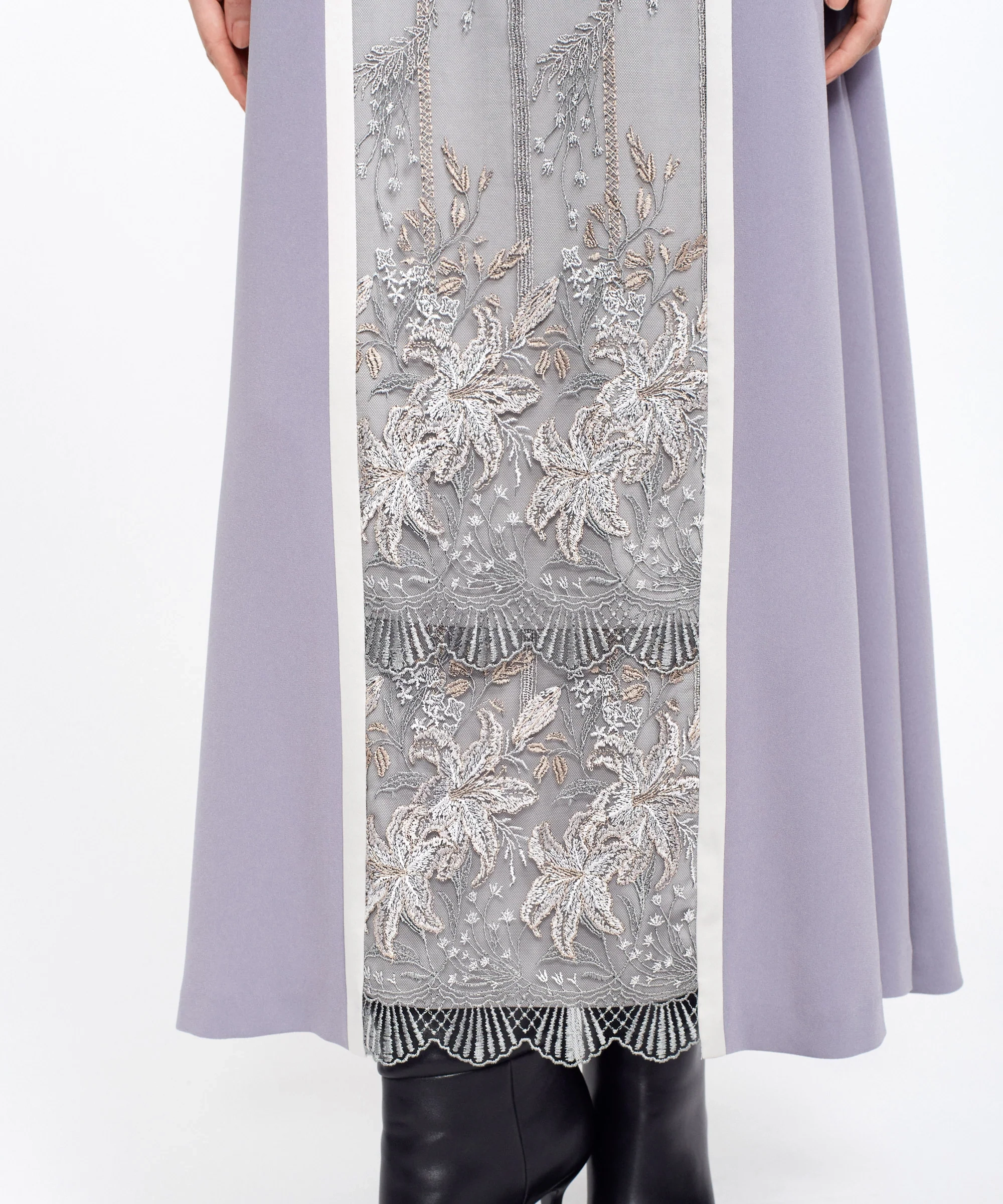 芸術的な刺繍デザインが魅力のMURRALのドレス。繊細なラインで表現されたモチーフが、シンプルなボディに映え、洗練された印象を演出します。
