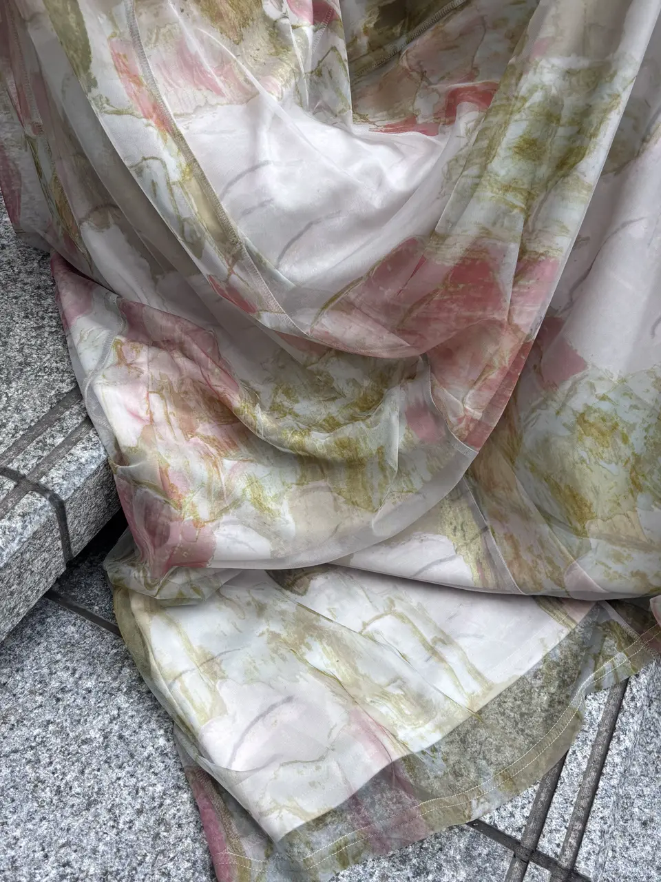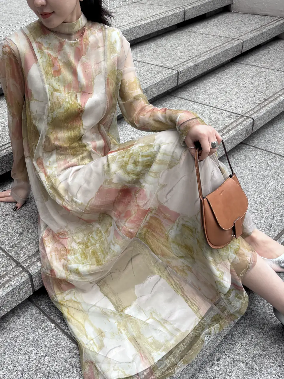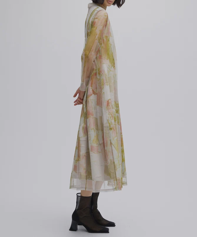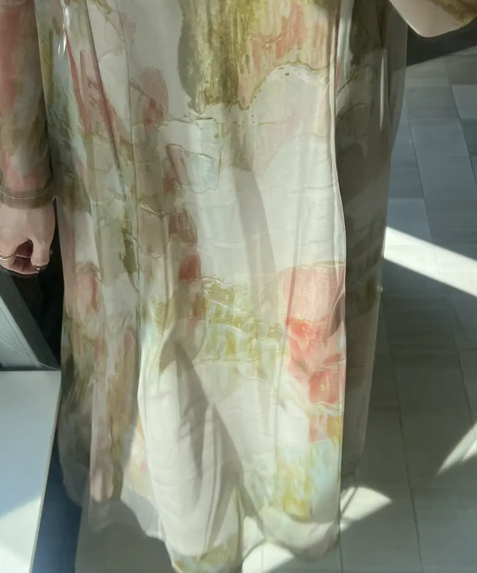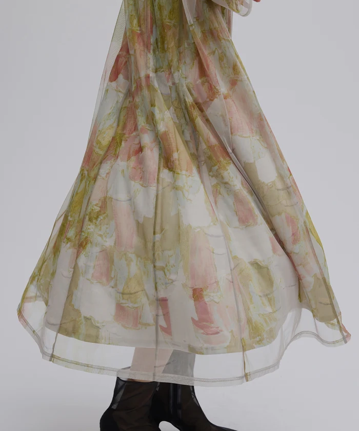石膏アートからインスピレーションを受けて制作した、オリジナルのアート柄のレイヤードドレス。